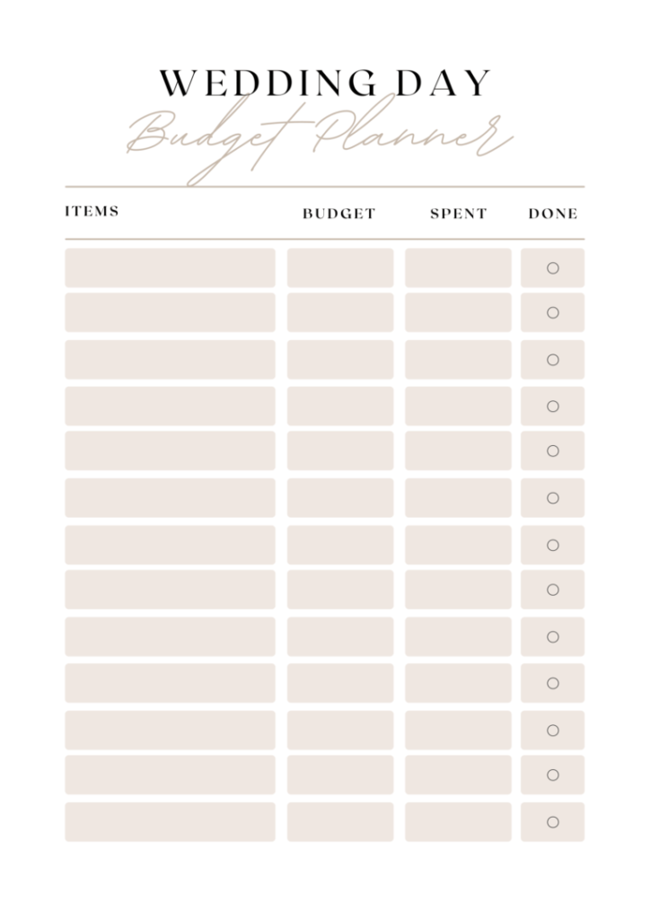 WEDDING DAY BUDGET PLANNER
