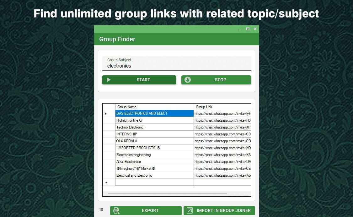 Find unlimited group links from internet with related topic