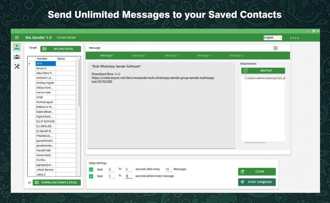 Send Unlimited Messages To Your Saved Contacts